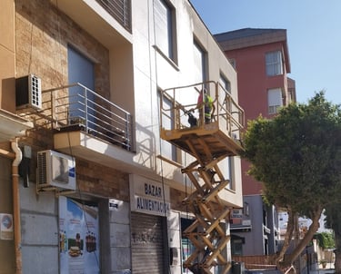 En Reformas Juma, realizamos la limpieza integral de la fachada, eliminando suciedad, moho y residuos mediante hidrolimpiadora de alta presión. Posteriormente, procedimos al pintado completo con pintura elástica flexible, ideal para exteriores, garantizando resistencia y durabilidad frente a la intemperie. Para ejecutar el trabajo, utilizamos grúas y técnicas de trabajos verticales, lo que nos permitió acceder a todas las zonas con total seguridad y precisión. Como en cada proyecto, nuestro objetivo fue lograr un acabado impecable, adaptado a las necesidades del cliente y cumpliendo con los más altos estándares de calidad, estética y profesionalismo.